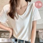 送料無料 2枚セット Tシャツ tシャツ 半袖 無地 トップス カジュアル レディース 着まわし コーデ シンプル Vネック Uネック