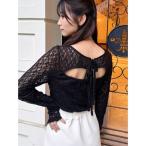 tシャツ 透かし編みオーガンジートップス レディース
