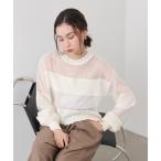 【10%OFFクーポン!4/17(金)9:59まで】AMELY バルーンフリル ティアードフリル Uネック パワーショルダー ドッキングトップス ダンボールニット オーガンジー 半袖 五分袖 レディース おすすめ おしゃれ 春夏 【atpss25-111