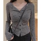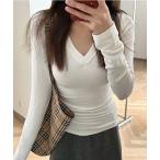 tシャツ Vネックギャザーフリル長袖カットソー レディース