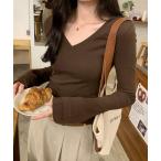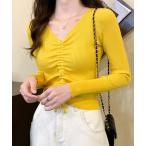 tシャツ Vネックシャーリングニット 長袖 レディース