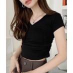 tシャツ Vネック サイドシャーリング コンパクト フレンチスリーブ Tシャツ レディース