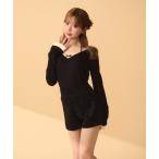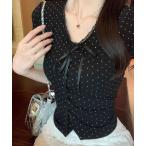 tシャツ フロントリボン ドットレース VネックTシャツ レディース