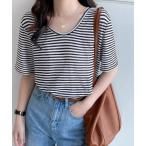 tシャツ ボーダー柄Tシャツ Vネックカットソー夏 レディース