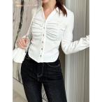 tシャツ ギャザー ブレード Vネック トップス レディース