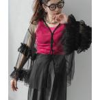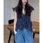 tシャツ Vネック ノースリーブ ボリュームフリル トップス レディース
