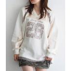 tシャツ 「WEB限定」切りっぱなしVネックワッペン裏毛プルオーバー レディース
