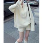 tシャツ Vネックニット&パンツ 「2点セットアップ」 レディース