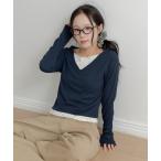 tシャツ 「1枚でレイヤード風!」「UNE ORIGINAL」ラブリーバイカラーフラワーパターンVネックレイヤード長袖Tシャツカットソー レディース