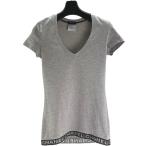 シャネル CHANEL 裾ロゴレースVネック半袖Tシャツ P41322 グレー コットン 半袖Tシャツ レディース 中古