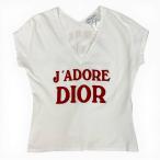 Id10 Christian Dior クリスチャンディオール ガリアーノ期 J'ADORE ロゴ Vネック Tシャツ 3H16155400 40 ホワイト コットン レディースu02t