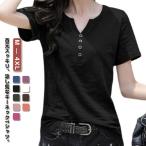 半袖 プルオーバー 夏トップス ボタンキーネック Tシャツ レディース スリム 細身 トップス カットソー Vネック 無地 半袖tシャツ 夏 春夏 ス