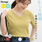 トップス Tシャツ 半袖Tシャツ カットソー 半袖 ハニさら 接触冷感 UVカット 遮熱 Vネック 綿混 レディース Honeys ハニーズ きれいめVネックTシャツ