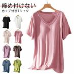アンダーフリー 柔らかい 半袖 ブラトップ カップ付きTシャツ Vネック レディース ルームウェア ゴムなし インナー Uネック tシャツ 無地 パッ