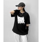 tシャツ 「LVEU.」ストリートアートプリントTシャツ / トップス カットソー Tシャツ プリント 半袖 オーバー カジュアル ホワイト ブラック