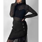 tシャツ 「LVEU.」パターンレースシアートップス / トップス シアー シアートップス 長袖 レース レイヤード プチハイネック ブラック アイボ