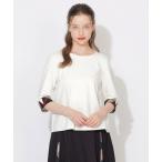 tシャツ リボン コンビ パフスリーブ カットソー ‐ウォッシャブル‐ レディース