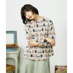 tシャツ Molino ロールカラーダブルジャカード総柄カットソー レディース