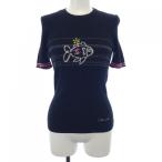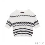 プラダ PRADA カシミヤ インターシャ Tシャツ ニット 半袖 カシミヤ オフホワイト ボルドー P24M2M レディース 中古