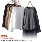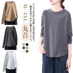 無地 丸首 Tシャツ リラックス トップス 長袖 ロンT レディース 大人 ゆったり クルーネック 冬 体型カバー オーバーサイズ 普段着 ロングt
