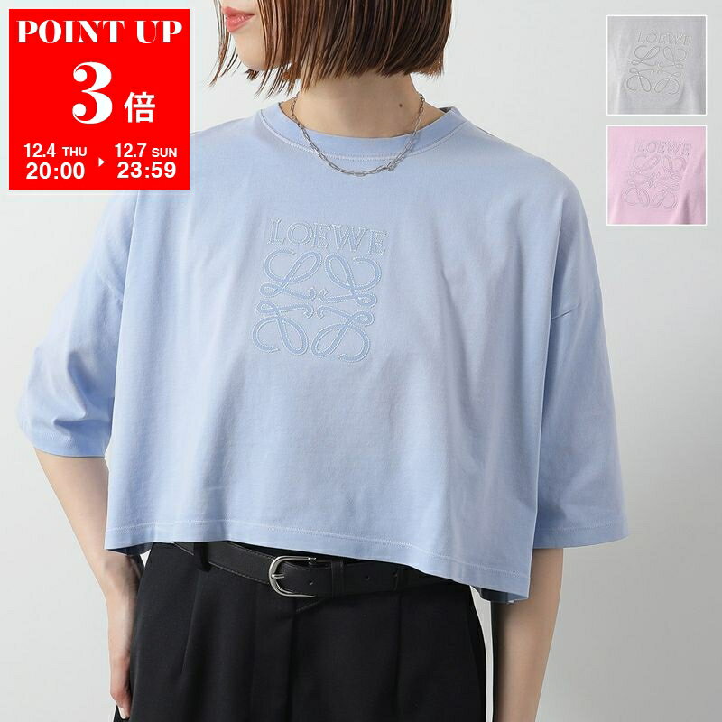 LOEWE ロエベ Tシャツ S359Y22X84 レディース 半袖 カットソー クロップド丈 アナグラム ロゴT 刺繍 コットン クルーネック カラー3色