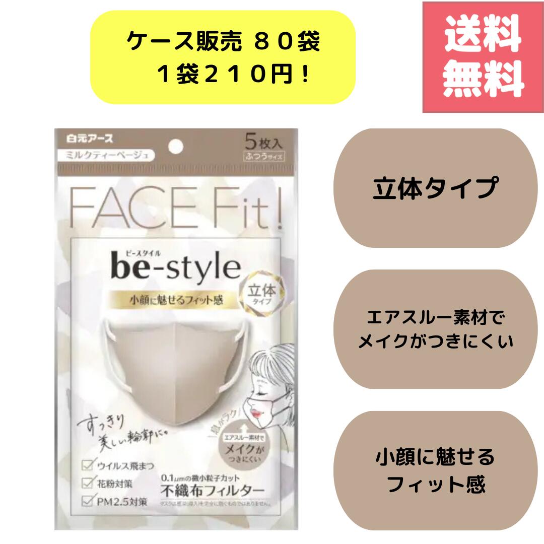 (楽天マラソンでポイントアップ&最大2000円オフクーポン配布中)送料無料 ケース販売 ミルクティーベージュ 立体マスク 5枚入 白元アース be-style ビースタイル 小顔見え 大人女性に人気のおしゃれベージュ 個包装で持ち運び衛生的 化粧がつ