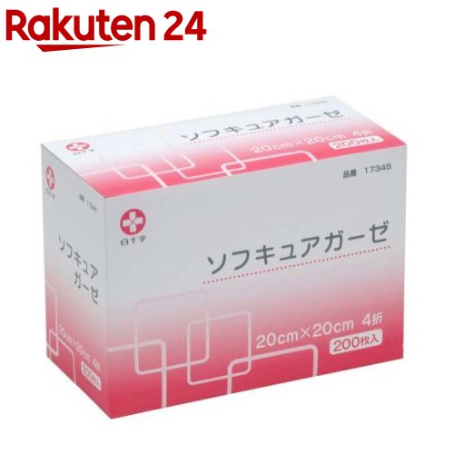 【白十字公式】不織布ガーゼ ソフキュアガーゼ 200枚 選べる1〜6個セット 20×20cm 25×25cm 30×30cm 4折 日本製 一般医療機器