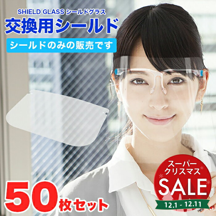 【スーパーセール 最大10%OFF 】フェイスシールド メガネ 交換 50枚 シールドグラス シールド〔交換用 取り替え 取り換え 交換用シールド シールドのみ 予備 フィルム メガネ式 曇らない 曇りにくい 医療 医療用 飲食業 接客 感染防止 ウイルス対策〕[M便 1/80]