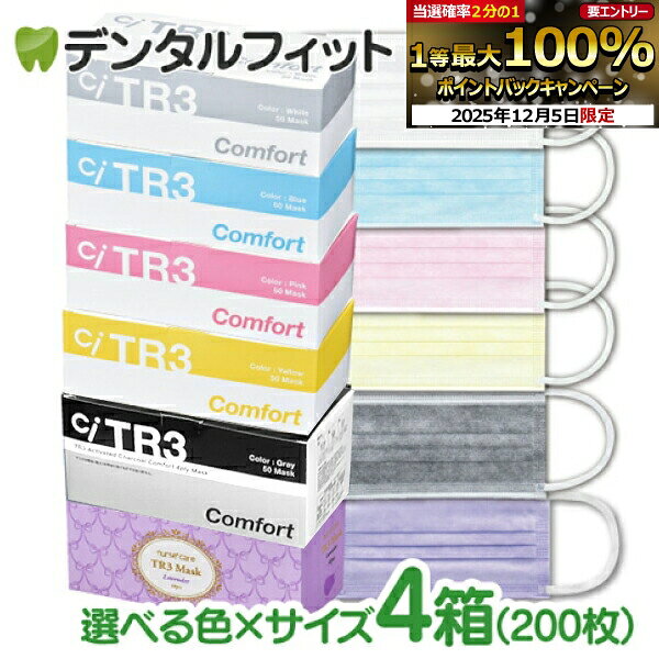 【★10%OFF】TR3コンフォートマスク 4箱セット(1箱50枚入×4箱 合計200枚)【マスク 花粉】 マスク 不織布 不織布マスク 医療用 レベル3 【送料無料】