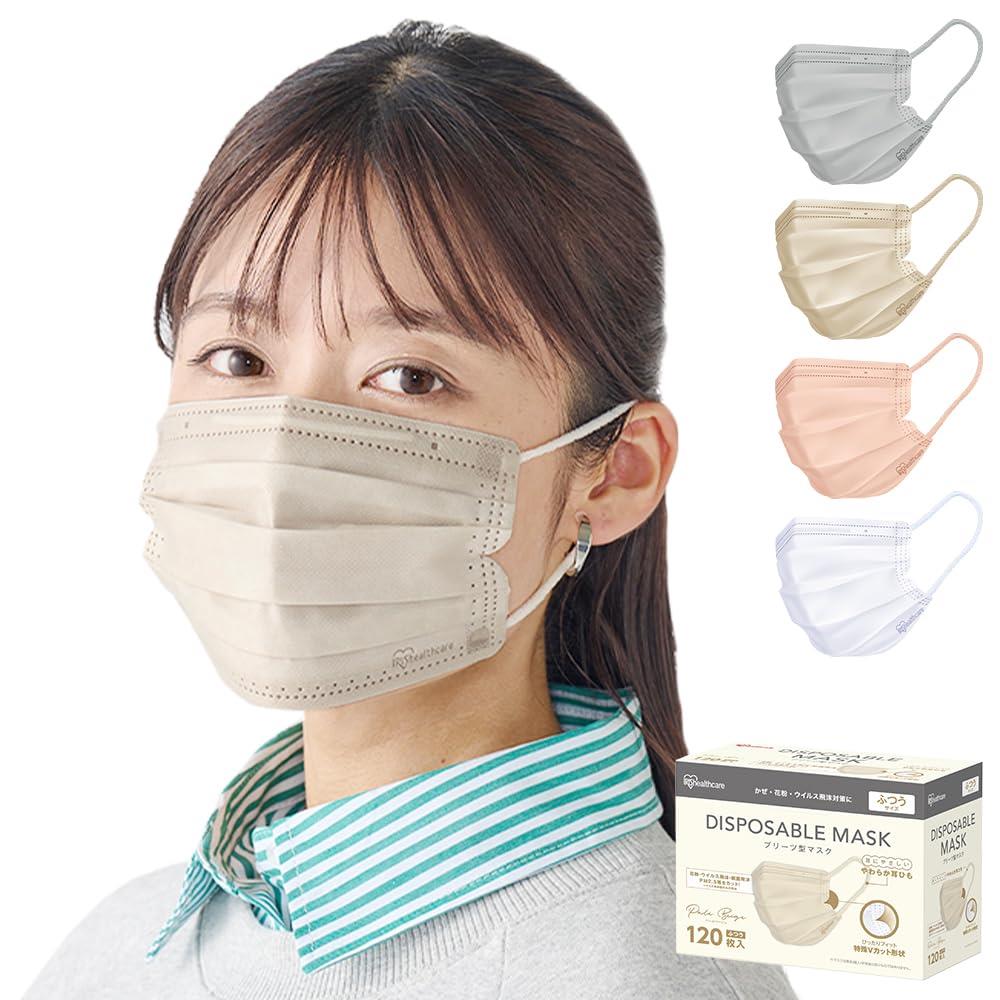 【スーパーセール中ポイント2倍+クーポン利用で10%OFF】【送料無料】アイリスオーヤマ プリーツ型マスク 120枚 ふつうサイズ 不織布 ディスポーザブル ペールベージュ PN-120MXQ