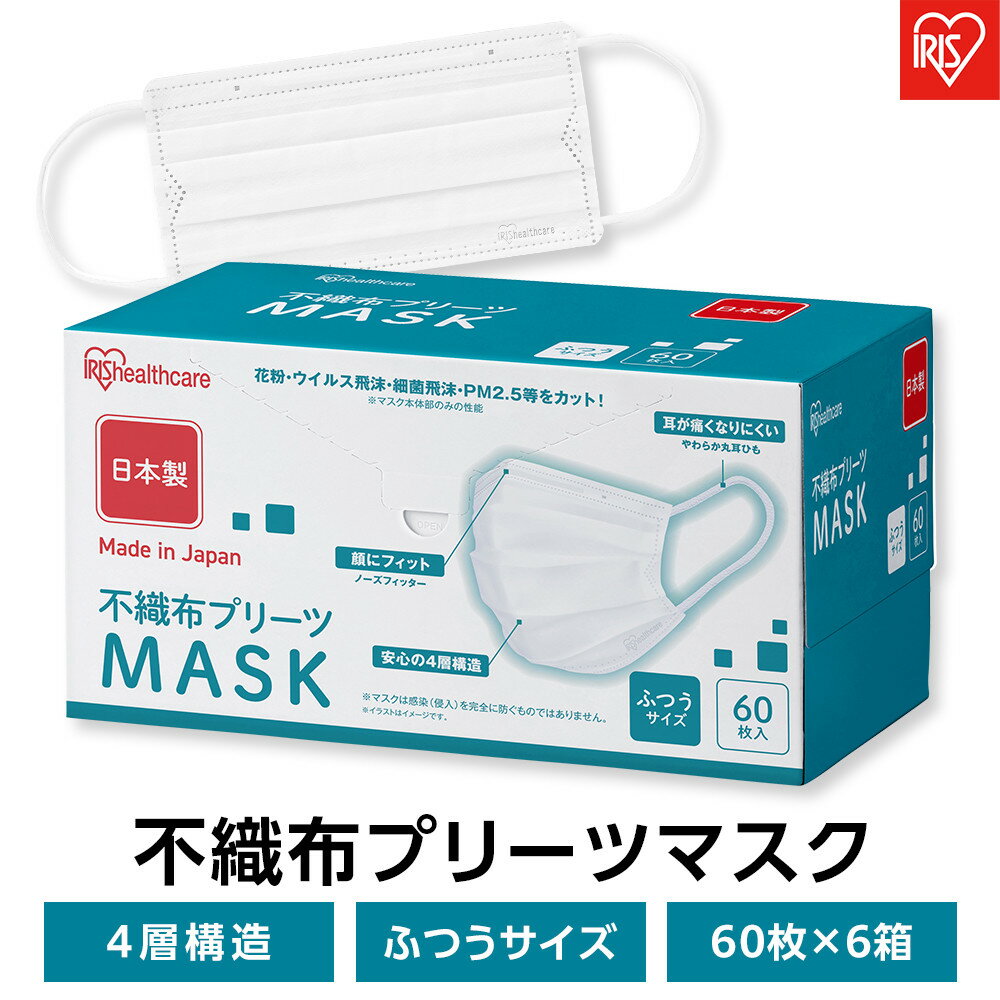 【ふるさと納税】【60枚×6箱】不織布プリーツマスクふつうサイズ マスク 不織布 花粉対策 花粉症 国産 雑貨 日用品 アイリスオーヤマ 計360枚 花粉対策 PM2.5 使い捨て PN-NC60L ホワイト