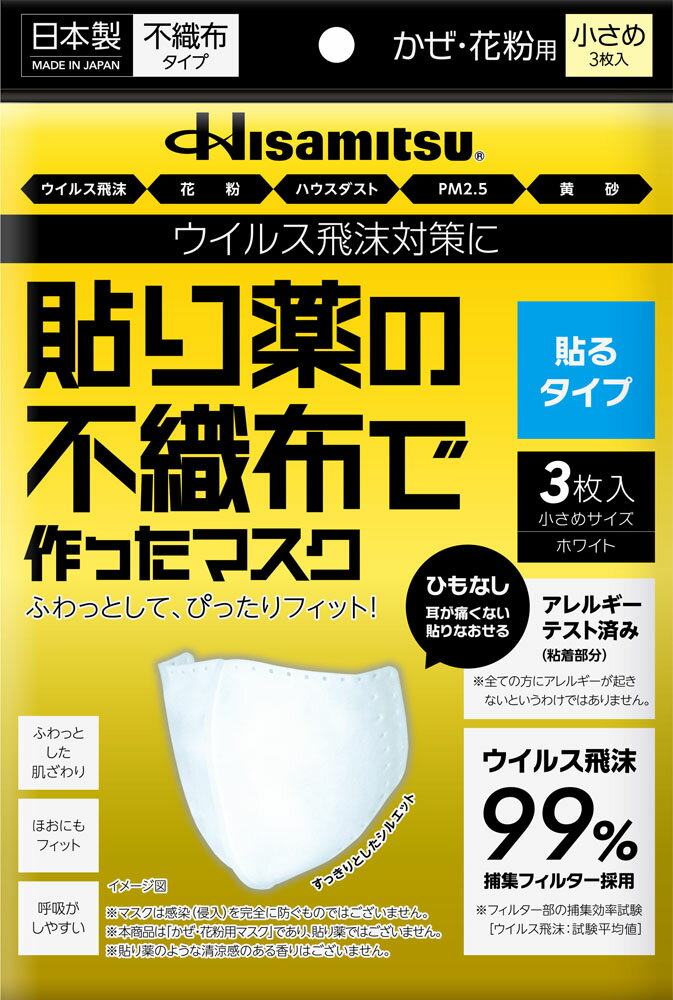 【12/3 20時から全品3%OFFクーポン&Pアップ】 ヒサミツ Hisamitsu 貼り薬の不織布マスク 貼るタイプ 小さめ 9816