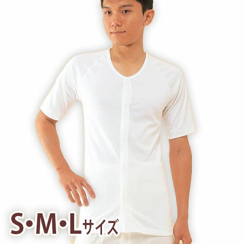 【メール便送料無料】紳士前開き半袖(ラグラン袖・丸型マジック)M/L/LLワンタッチ肌着・最高の肌ざわり 介護肌着 介護用品 介護衣料 介護服 高齢者 老人 お年寄り 病院 施設 入院 通院 介護 リハビリ パジャマ 着替え 下着 インナー 介護用下着 肌着 入院肌着