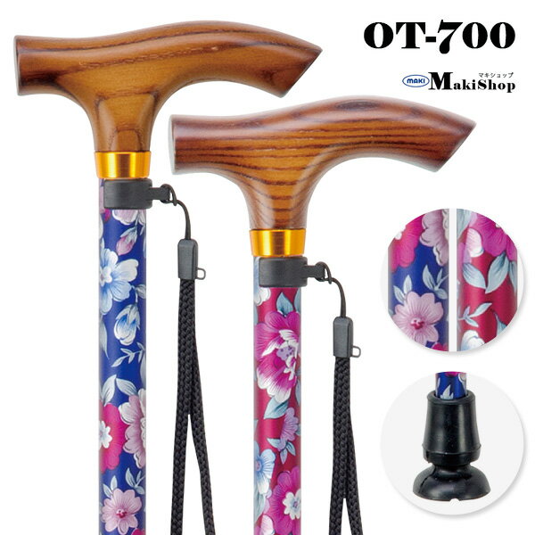 2%OFFクーポン 11/20 23:59まで ステッキ 杖 介護用品 おしゃれ かわいい 上品 伸縮 花柄 カラフル 先ゴム マキテック OT-711(青幅柄) OT-712(赤花柄) 父の日 母の日 プレゼント 孫 祖父 祖母