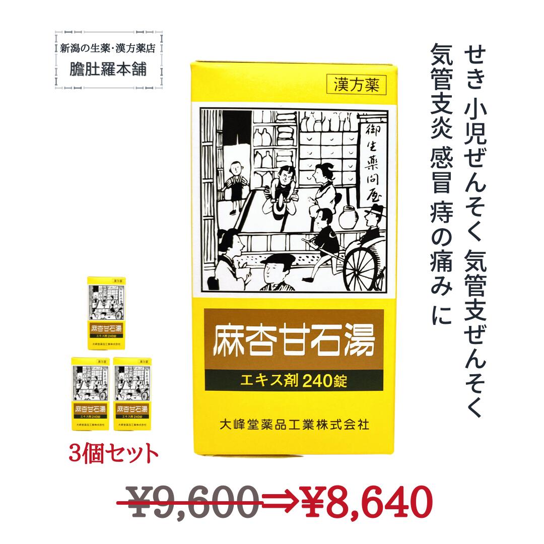 只今10%Off! 麻杏甘石湯エキス錠 〔大峰〕 240錠 約20日分 X 3個 せき 咳 気管支炎 漢方薬 気管支ぜんそく 小児ぜんそく 感冒 痔 痛み【送料無料】まきょうかんせきとう【第2類医薬品】 マキョウカンセキトウ常備薬 P5 先1 楽天 スーパーSALE