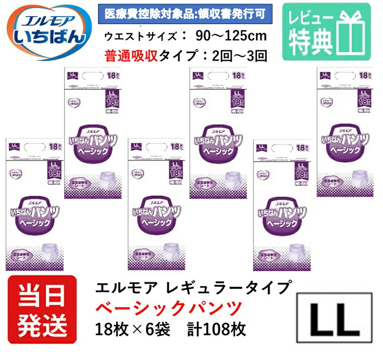 【当日発送】 エルモア 大人用紙おむつ LL いちばん パンツ ベーシック ll いちばんパンツ 18枚×6袋 大人用 おむつ 紙おむつ 大人用 オムツ 紙パンツ 大人用オムツ 大人用 紙おむつ 紙パンツ おむつ 大人 介護用パンツ リフレ うす型軽快パンツ リハビリパンツ はくパンツ
