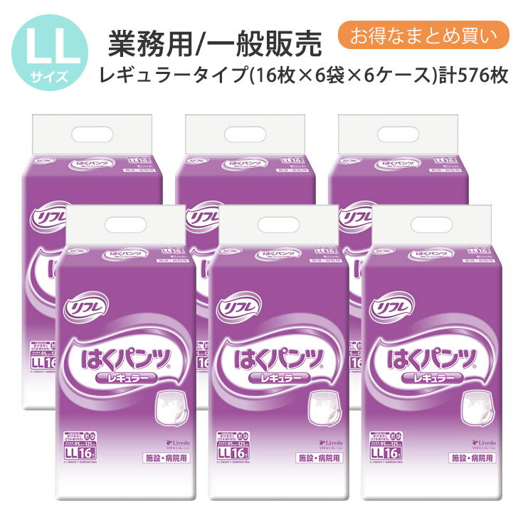 リフレ 大人用紙おむつ パンツ LL はくパンツ レギュラータイプ LLサイズ 16枚×6袋×6ケース ll 大人用 紙 おむつ 紙おむつ 大人用 大人用オムツ 紙パンツ 大人 オムツ 大人 介護用パンツ 介護用 介護