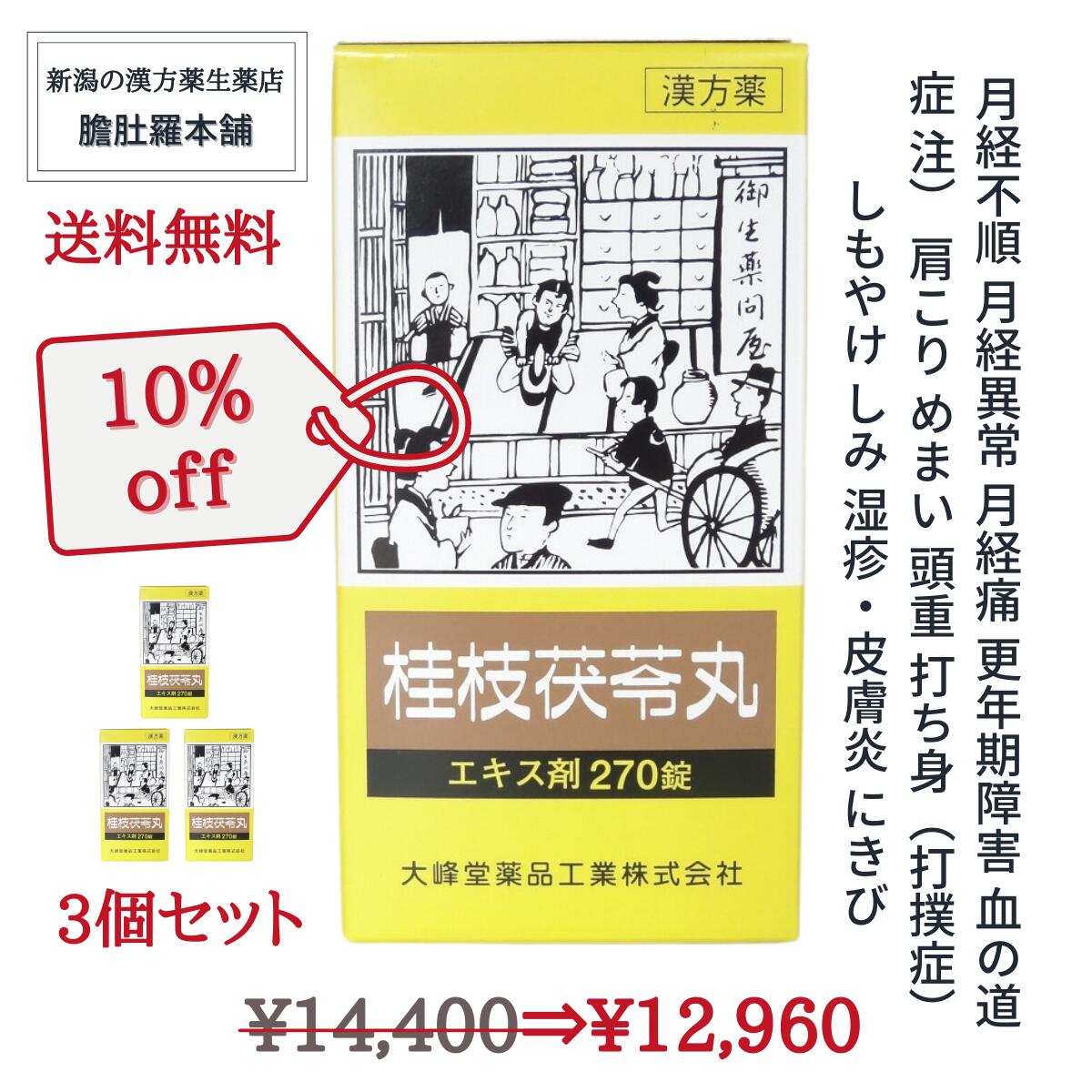 桂枝茯苓丸 エキス錠 OM 約90日分 270錠 X 3 更年期障害 月経不順 月経異常 月経痛 肩こり めまい 頭重 打ち身 打撲症 しもやけ しみ 更年期 漢方 婦人薬 【大峰】 【送料無料】 【第2類医薬品】 P9