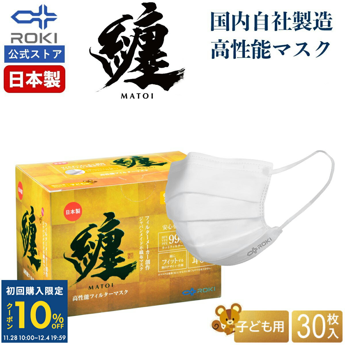 【初回限定10%OFFクーポン 12/4 20時まで】不織布 マスク 日本製 ホワイト 30枚 子ども用 個包装 プリーツ型 息がしやすい 肌にやさしい 耳にやさしい 公式 ROKI ロキ 纏 まとい MATOI