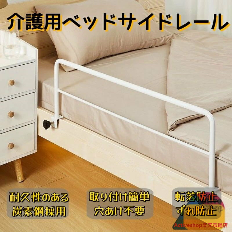 ベッドガード スチール製 ずれ防止 転落防止 ベッドサイドガード 介護用ベッドのサイドレール用 寝室手すり ケガ防止 高齢者用ベッドレール 寝具 生活用品