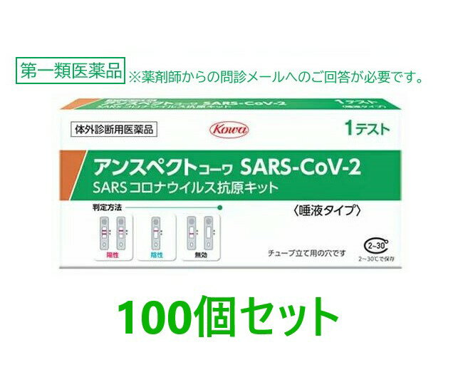 【100個セット】【第1類医薬品★ 厚生労働省承認】抗原検査キット SARS-CoV-2 アンスペクトコーワ (一般用) 1回用 / COVID-19 コロナウイルス 唾液 抗原検査キット 新型コロナウイルス 一般用抗原定性検査キット 体外診断用医薬品 唾液 興和