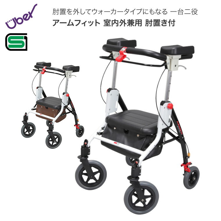 歩行器 介護 アームフィット屋内外兼用 標準 AR-458 ブラック ユーバ産業 │ 歩行車 歩行補助 手押し車 介護用品 老人 お年寄り 年配 座れる 日本製 歩行補助 ワンタッチ コンパクト 速度調整 折り畳み 高さ調整 日本製 高齢者