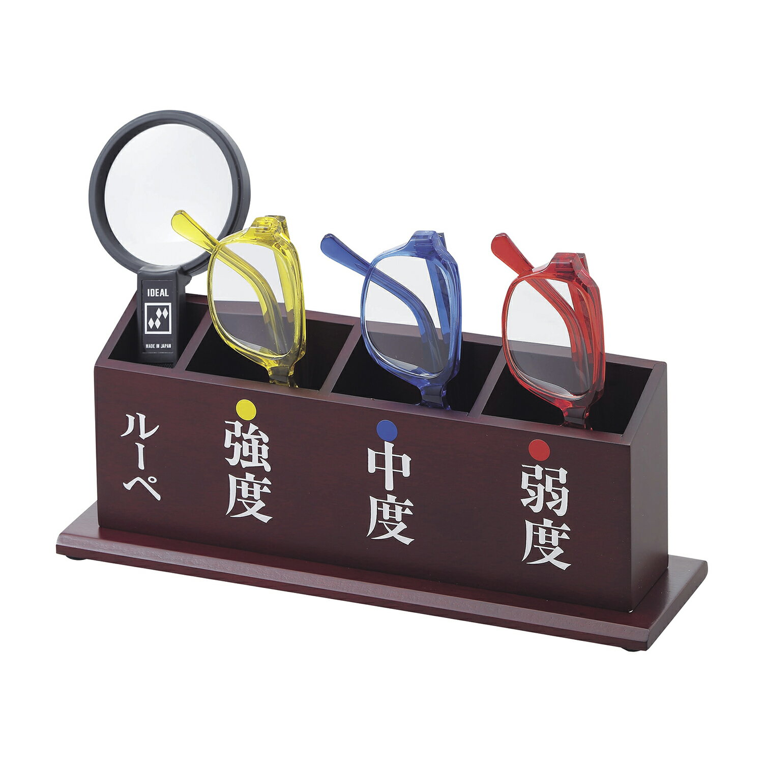老眼鏡(受け付け用) 弱度・中度・強度 セット内容:眼鏡(弱度・中度・強度)・スタンドケース、スタンドケース/シール(弱・中・強度・無地) 老眼鏡 薬局受付 病院窓口 病棟備品
