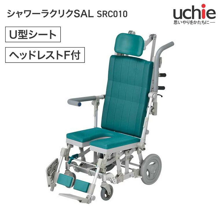 シャワーキャリー 入浴用 車椅子 シャワーラクリク SAL U型シート ヘッドレストF付 SRC010 グリーン ウチヱ | お年寄り 老人 シニア 病院 施設 デイサービス 入浴介助 訪問入浴 車いす 車イス お風呂 高齢者 介護用品 リクライニング 日本製 体圧分散 座位保持