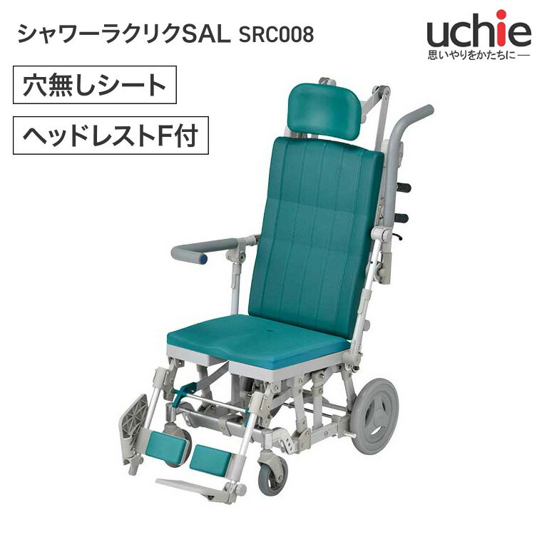 シャワーキャリー 入浴用 車椅子 シャワーラクリク SAL U型シート ヘッドレストF付 SRC010 グリーン ウチヱ | お年寄り 老人 病院 施設 デイサービス 入浴介助 訪問入浴 車いす 車イス お風呂 高齢者 介護用品 リクライニング 日本製 体圧分散 座位保持