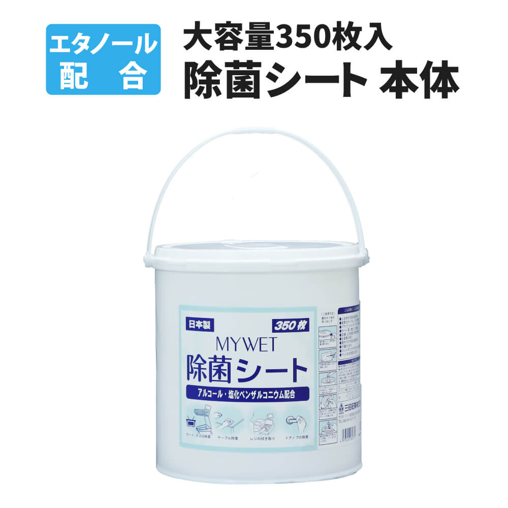 除菌シート 大容量350枚 MYWET アルコールタイプ 単品 塩化ベンザルコニウム0.05%配合 日本製 ウェットシート 衛生 オフィス 学校 家具 店舗 衛生管理 予防 対策