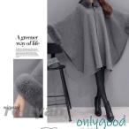 フォックスファー付 ポンチョ コート ケープコート コート レディース マント 秋冬 ケープ マント アウター ロング 冬 フェイクファー 体型カバー
