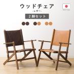 折りたたみ椅子 アウトドアチェア 木製 レザー 本革 キャンプ 椅子 イス おしゃれ グランピング ウッドチェア 2脚セット C-F-3