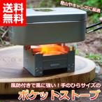 ポケットストーブ & 専用風防 & メッシュ収納袋 セット 送料無料 焚き火台 コンパクト メスティン 小さいサイズ アウトドア キャンプ