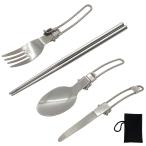 カトラリー5点セット アウトドア キャンプ 調理器具 フォーク・スプーン・ナイフ・箸セット 収納袋付き SD-CK005-5P